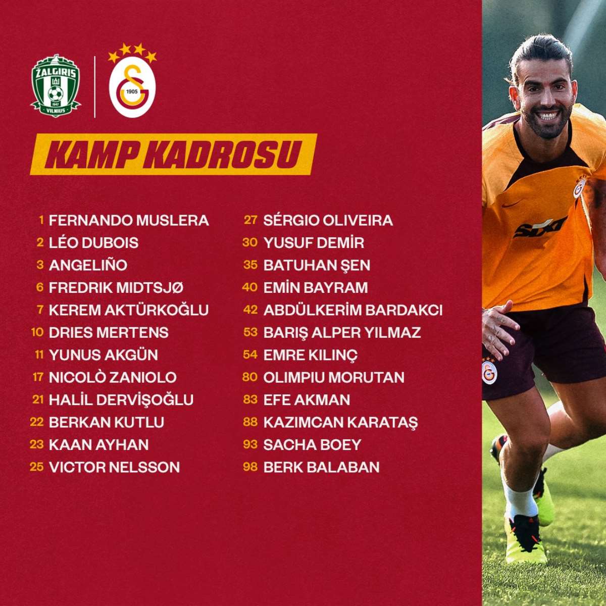Galatasaray'ın Zalgiris kafilesi şu şekilde: