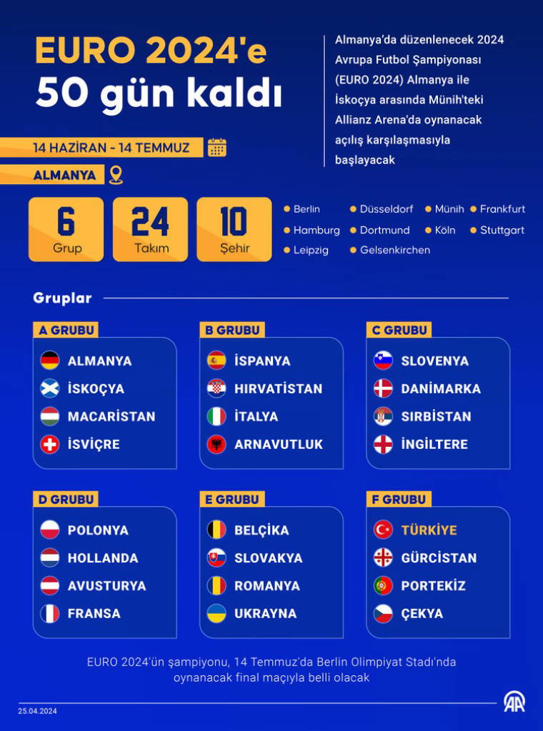 Almanya'nın ev sahipliği yapacağı EURO 2024'ün başlamasına 50 gün kaldı.