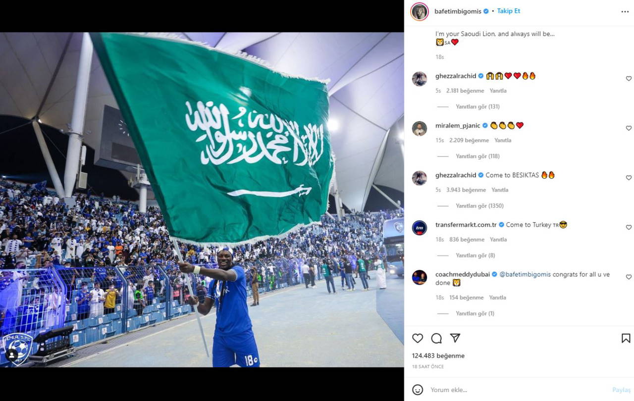 Süper Lig'in 2017/18 sezonunda Galatasaray formasıyla çıktığı 33 maçta 29 kez rakip ağları sarsarak gol krallığı ve şampiyonluk yaşayan 36 yaşındaki Bafetimbi Gomis, akabinde 6 milyon euro bonservis bedeliyle Suudi Arabistan'ın yolunu tutmuştu.