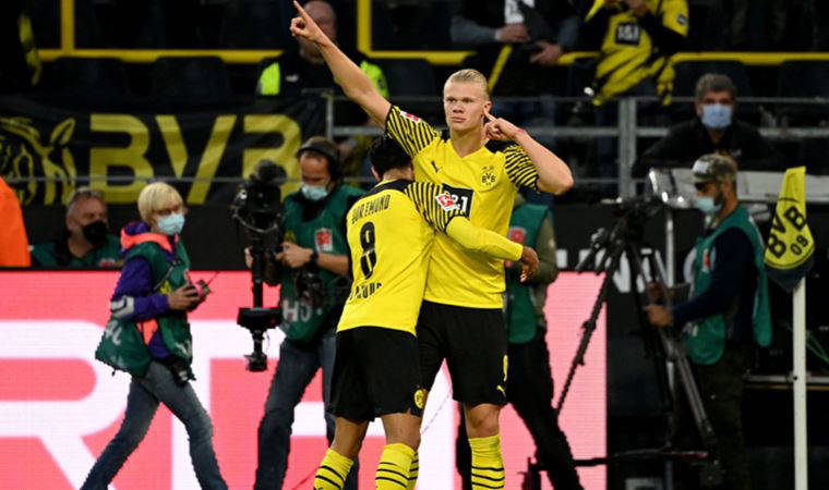 Dortmund, 10. dakikada Raphael Guerreiro ve 24. dakikada Erling Haaland'ın golleriyle ilk yarıyı 2-0 önde kapattı.