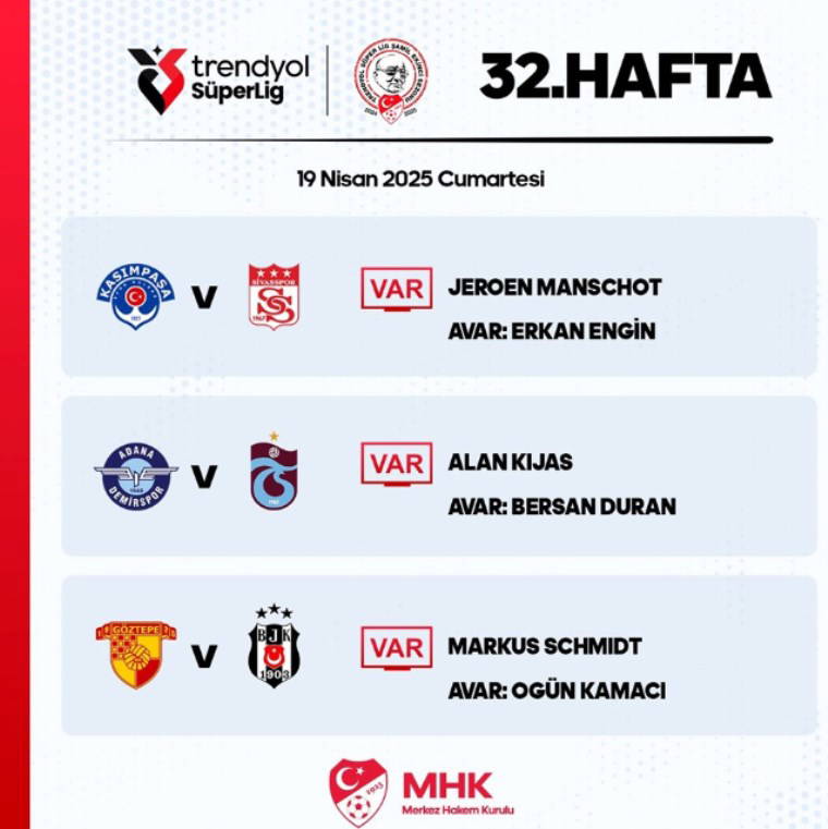 Günün diğer maçlarında görev alacak VAR hakemleri şöyle: