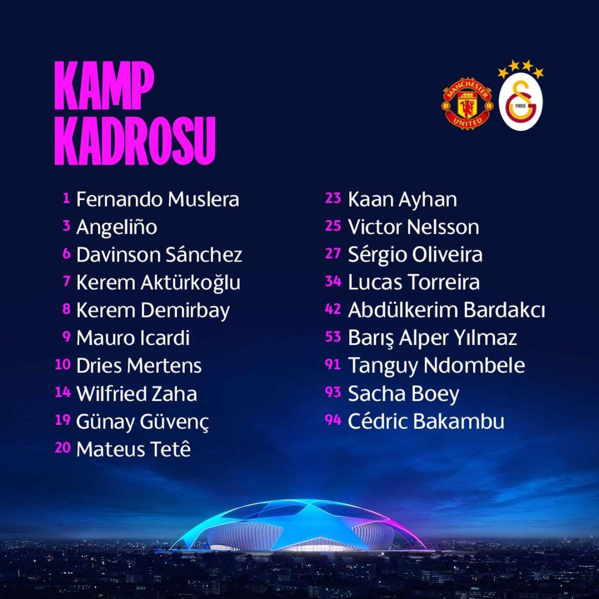 Galatasaray, salı günü deplasmanda Manchester United ile oynayacağı maçın kamp kadrosunu açıkladı.