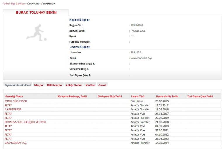 İzmir ekibi Altay'ın formasını giyen 18 yaşındaki futbolcu Burak Tolunay, Galatasaray'a transfer oldu.
