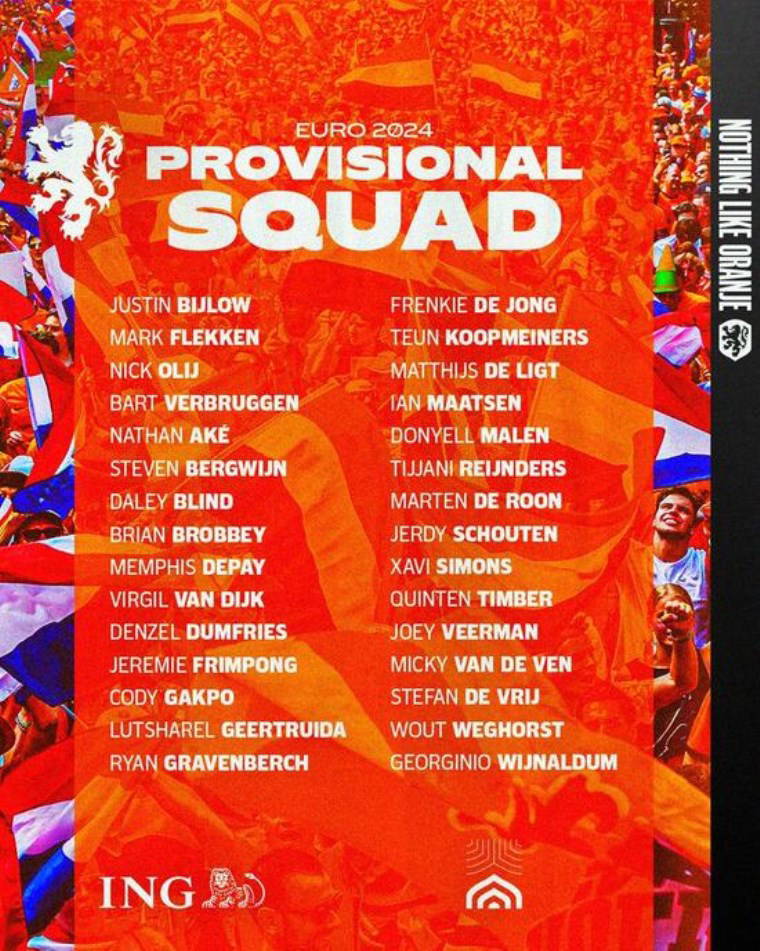 Hollanda, EURO 2024 geçici aday kadrosu belli oldu.