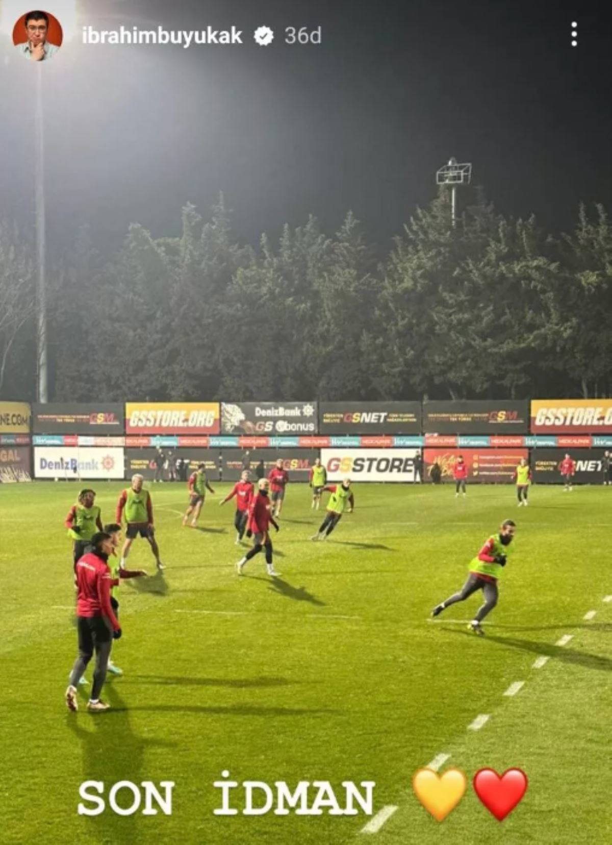 Sarı-kırmızılıların yaptığı son antrenmanı takip ederken iki paylaşım yapan oyuncu İbrahim Büyükak, paylaşımlarında "Son idman" ifadelerini kullandı.