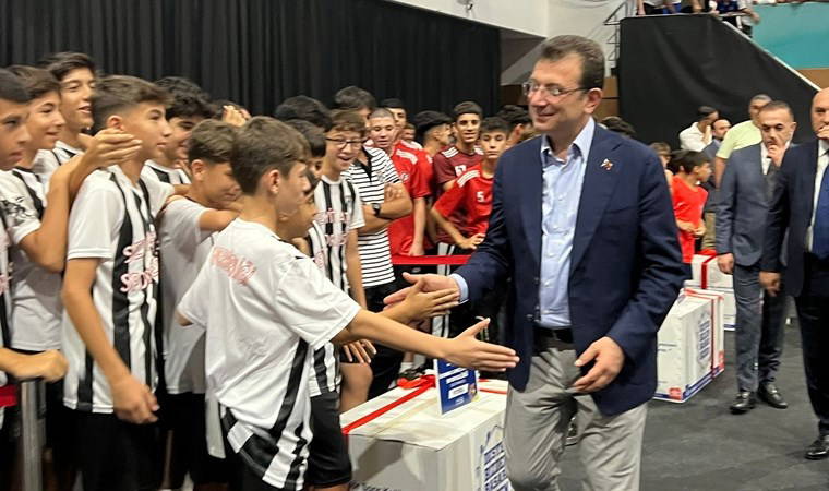 Konuşmaların ardından İmamoğlu, sembolik olarak 2 spor kulübüne malzeme dağıtımını gerçekleştirdi.