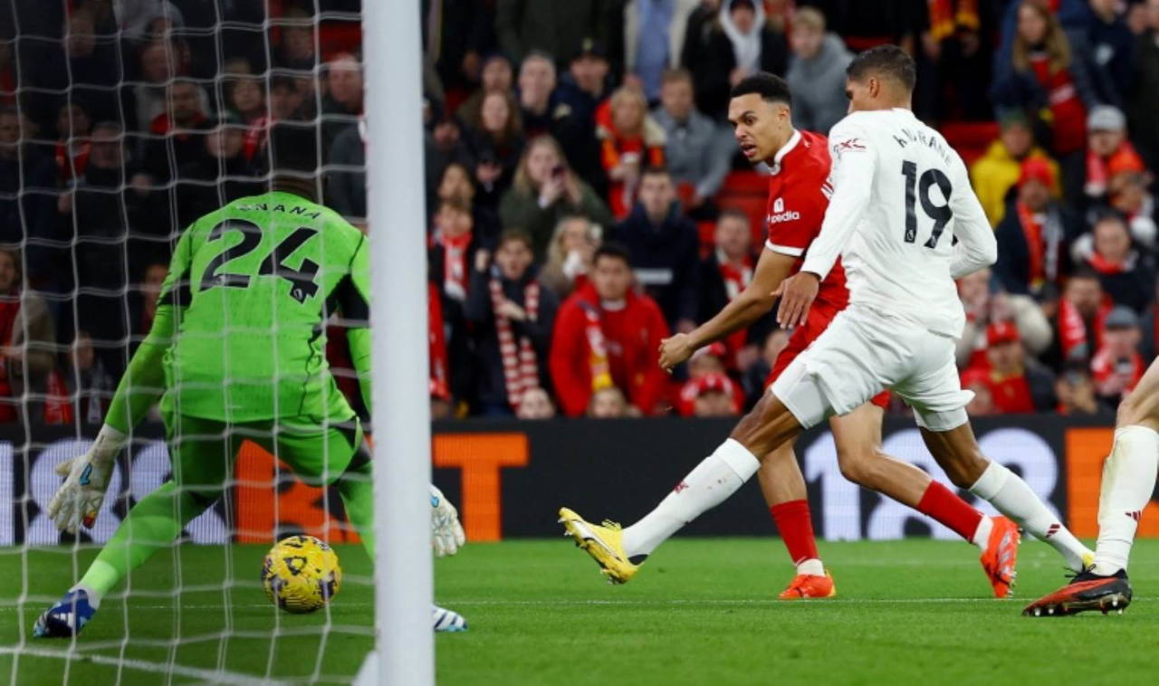 Maç boyunca Manchester United kalesini 34 kez yoklayan Liverpool, 8 kez çerçeveyi buldu ancak Andre Onana'nın koruduğu kaleyi geçemedi.
