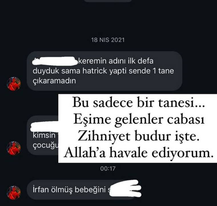 İrfan Can Eğribayat kendisi, eşi ve vefat eden bebeğine gelen hakaretleri ve küfürleri sosyal medya hesabından paylaşarak, "Bu sadece bir tanesi... Eşime gelenler cabası. Zihniyet budur işte. Allah'a havale ediyorum" ifadelerini kullandı.