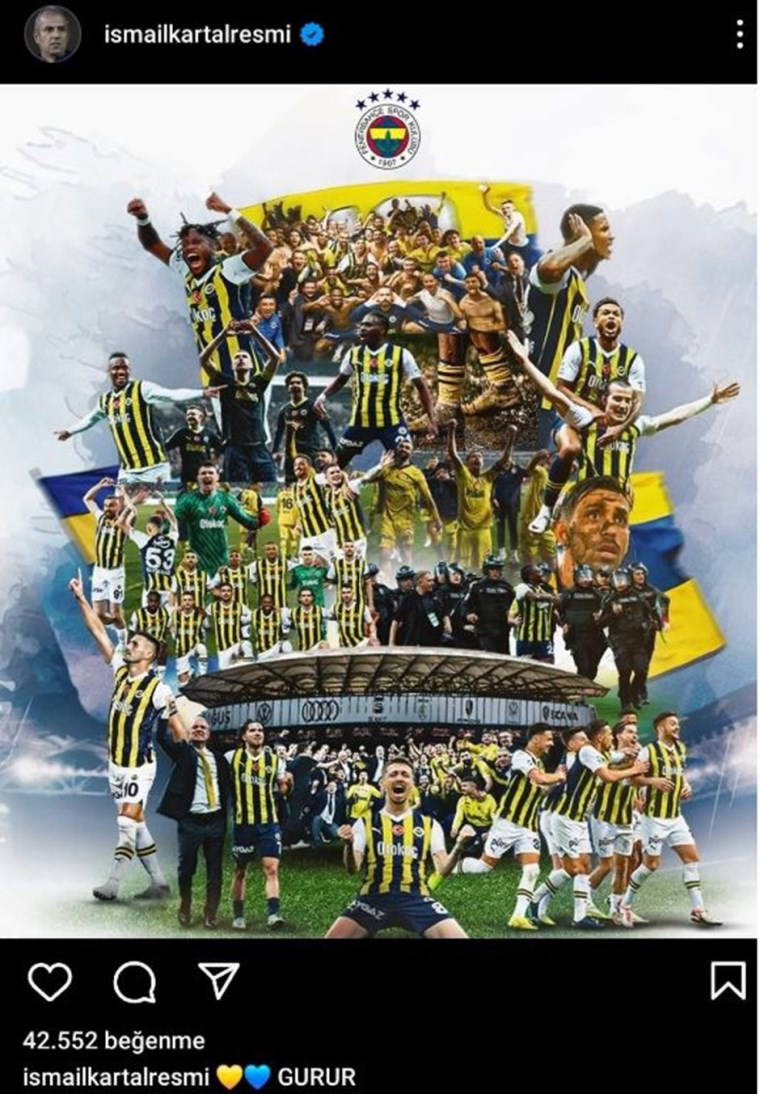 Süper Lig'in son haftasında Fenerbahçe, sahasında İstanbulspor'u 6-0 mağlup etti. İstanbulspor maçında tribünler tarafından adına tezahüratlar yapılan teknik direktör İsmail Kartal paylaşımda bulundu.
