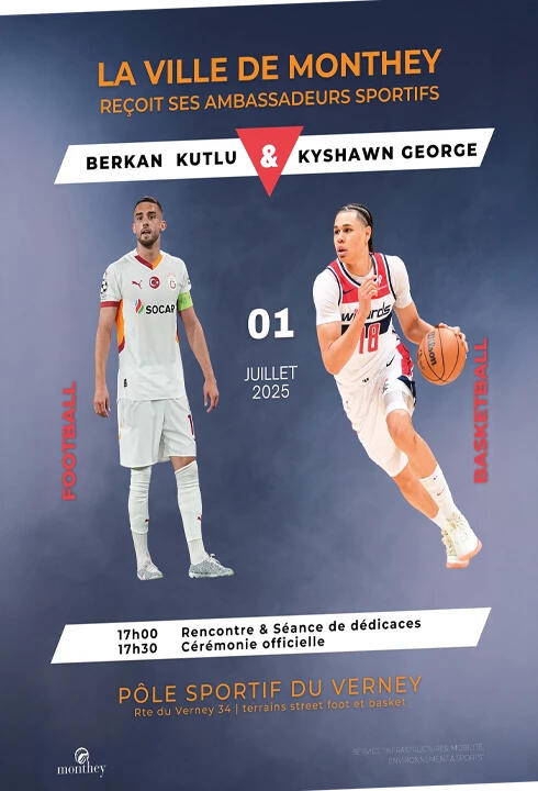 İsviçre'de Monthey şehri belediyesi iki spor elçisi Washington Wizards NBA basketbol oyuncusu Kyshawn George ve Galatasaraylı Berkan Kutlu'nun adının verildiği iki sahanın açılışın salı günü yerel saat ile 17.00'de yapacak.