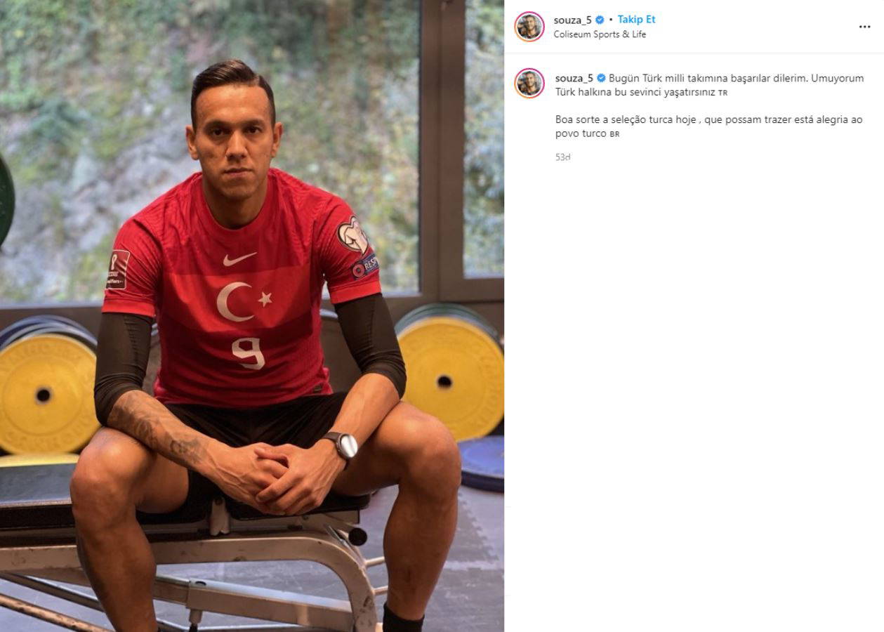 Beşiktaş'ın Brezilyalı orta saha oyuncusu Türkiye Milli Takımı forması giyerek yaptığı paylaşımda "Bugün Türk Milli Takımı'na başarılar dilerim. Umuyorum Türk halkına bu sevinci yaşatırsınız" ifadelerini kullandı.
