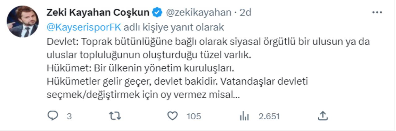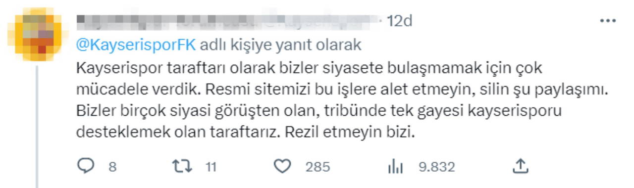 Sosyal medya kullanıcılarından hükümet yanlısı açıklama yapan Kayserispor Kulübü'ne tepki yağdı.