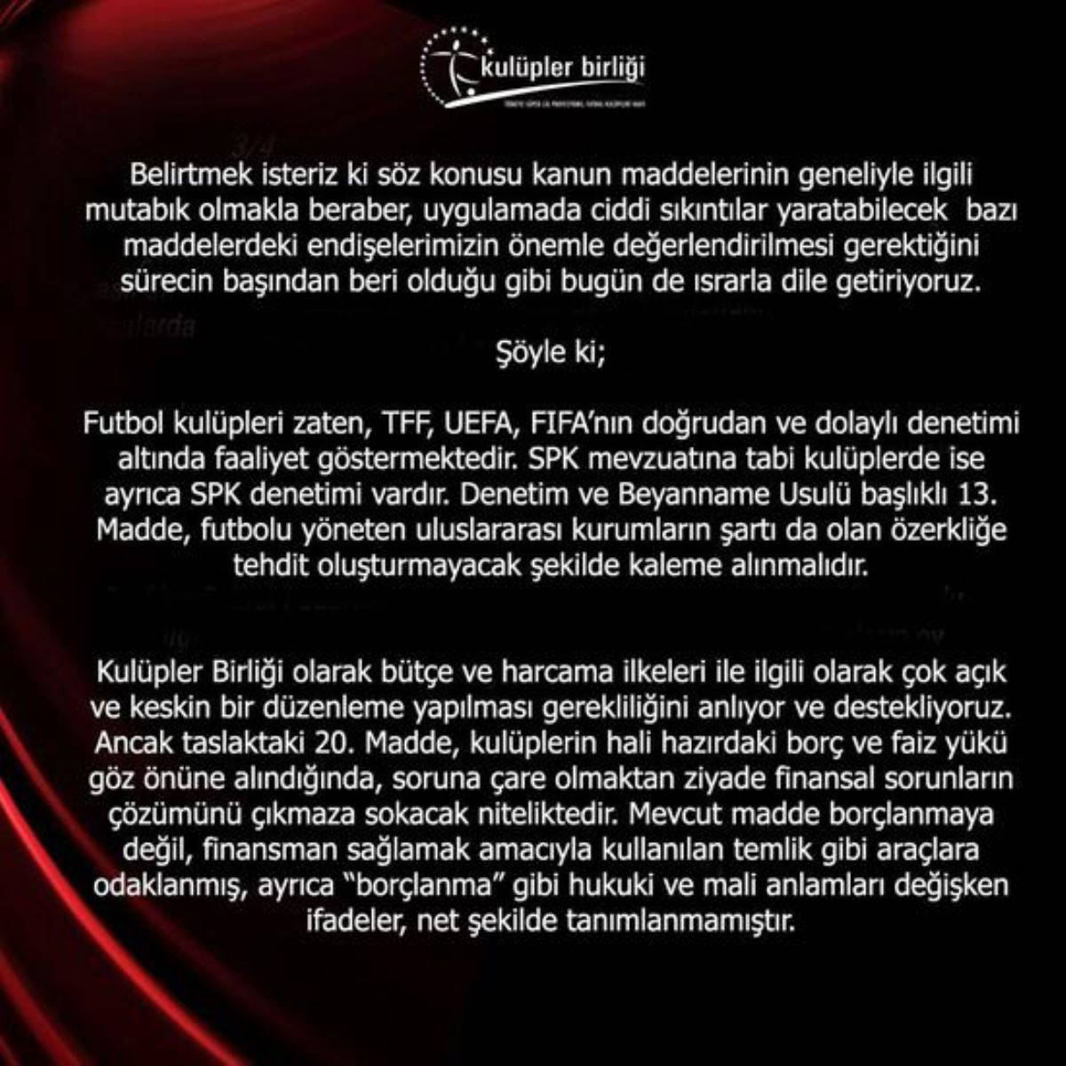 İşte Kulüpler Birliği'nden yapılan o açıklama: