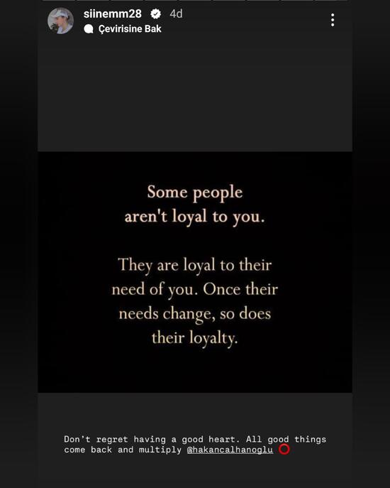 Paylaşımda alıntı yaptığı sözlerde ise, "Bazı insanlar sana sadık değildir. Sana olan ihtiyaçlarına sadıktırlar. İhtiyaçları değiştiğinde sadakatleri de değişir" ifadesi yer aldı.
