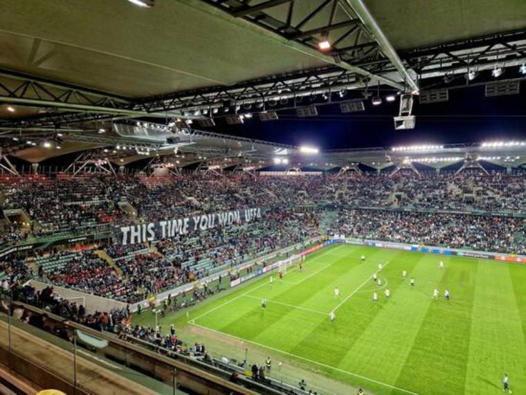 Legia Varşova taraftarları, Molde ile oynadıkları maçta UEFA için olay bir pankart açtı.
