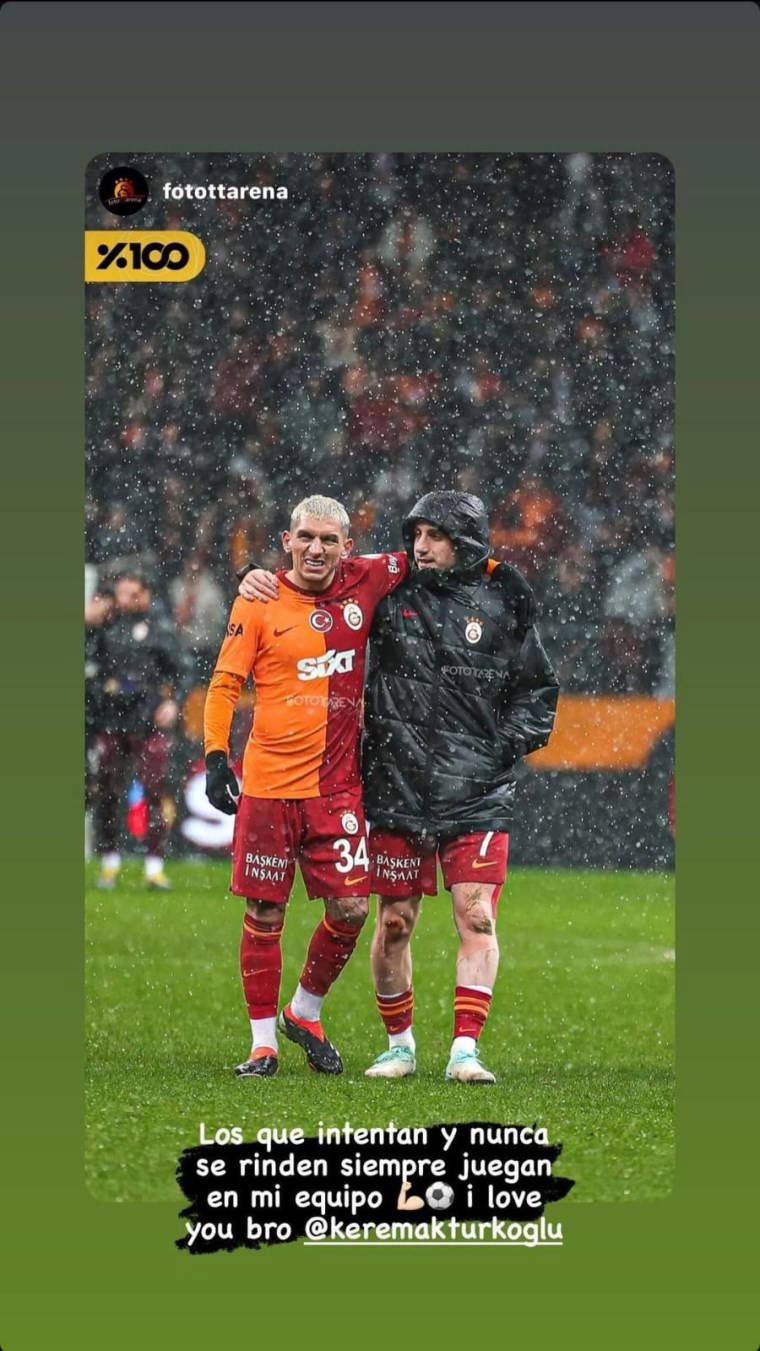 Sosyal medya hesabından paylaşım yapan Lucas Torreira, Kerem Aktürkoğlu'na moral verdi.
