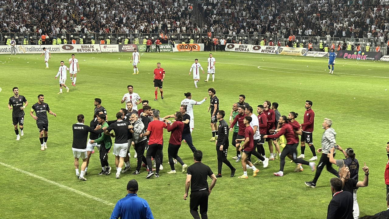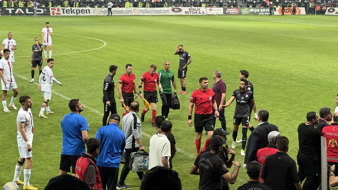 Bunun üzerine maçın hakemi Ümit Öztürk, sahayı yardımcılarıyla terk ederek soyunma odasına gitti. Stattan yapılan anonsla maçın tatil edilmesine karar verildiği duyuruldu.