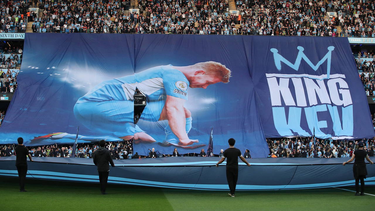 Karşılaşma öncesinde tribünlerde dev bir pankart açıldı. Üzerinde De Bruyne'nin diz çöküp kramponunu bağladığı ikonik bir pozun yer aldığı dev afişte, "KING KEV" (Kral Kev) ifadesi dikkat çekti. Taraftarlar uzun süre alkışlarla yıldız oyuncuya sevgilerini gösterdi.