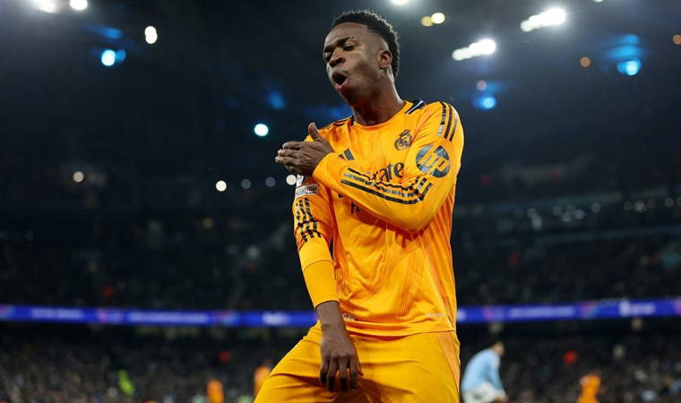 Real Madrid'in son golünde Jude Bellingham'a asist yapan ve performansıyla maçın oyuncusu seçilen Vinicius Jr, Manchester City taraftarlarına, formadaki 15 Şampiyonlar Ligi kupasını göstererek cevap verdi.