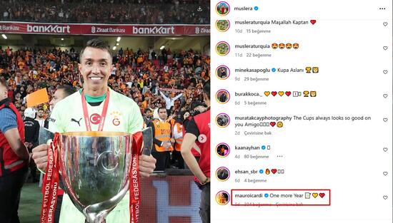Öte yandan Mauro Icardi, sosyal medya hesabından Fernando Muslera'ya bir yıl daha Galatasaray'da kalması için mesaj attı. Bu paylaşım kısa sürede beğeni yağmurunda tutuldu.