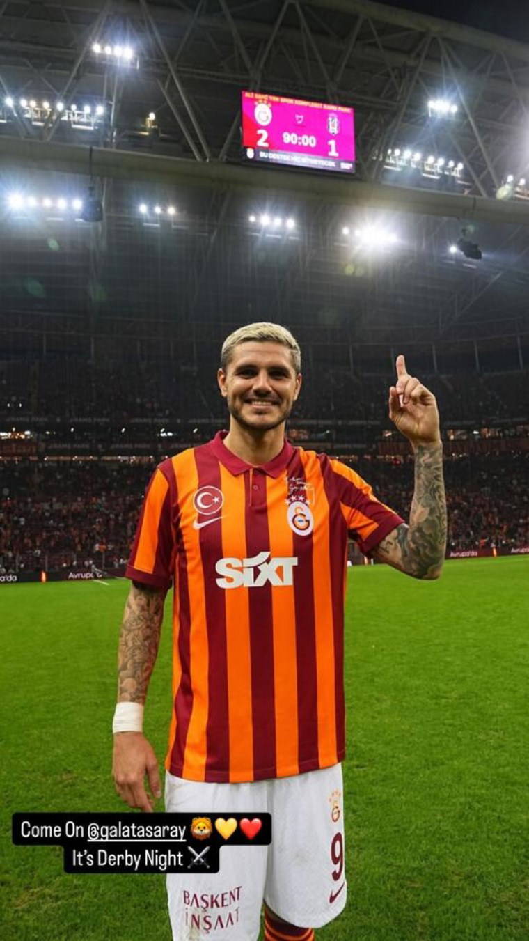 Arjantinli yıldız, daha önce Beşiktaş'ı 2-1 mağlup ettikleri maçtan bir fotoğraf paylaştı. Icardi, bu paylaşımına, "Derbi akşamı. Haydi Galatasaray" sözlerini yazdı.