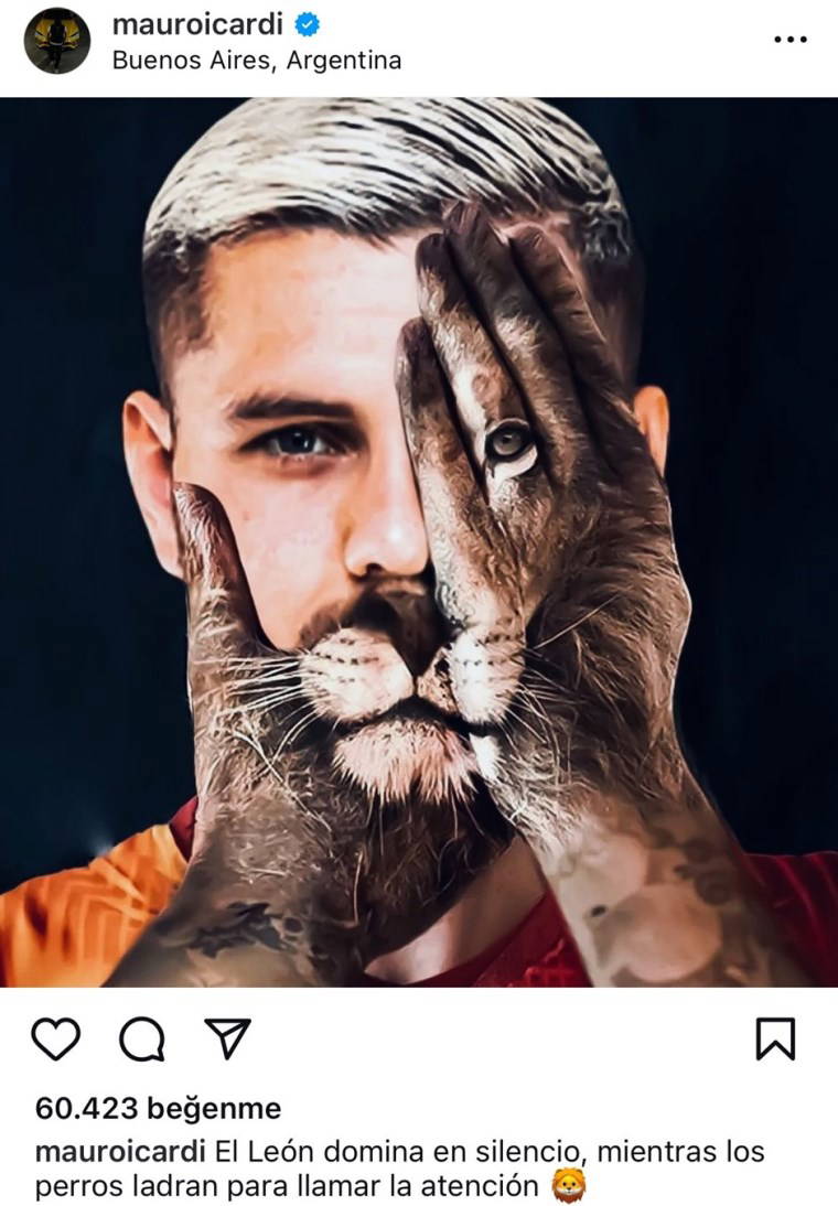 Mauro Icardi paylaşımında, "Aslan sessizce hakimiyet kurarken, köpekler dikkat çekmek için havlıyor" ifadelerini kullandı.