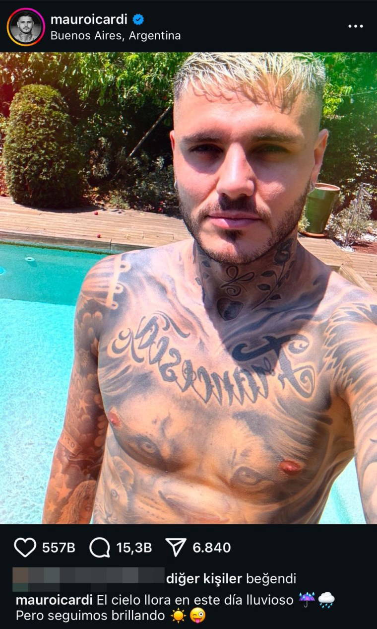 Havuz kenarından fotoğrafını paylaşan Icardi, "Bu yağmurlu günde gökyüzü ağlıyor. Ama biz hala parlıyoruz" mesajını paylaştı.