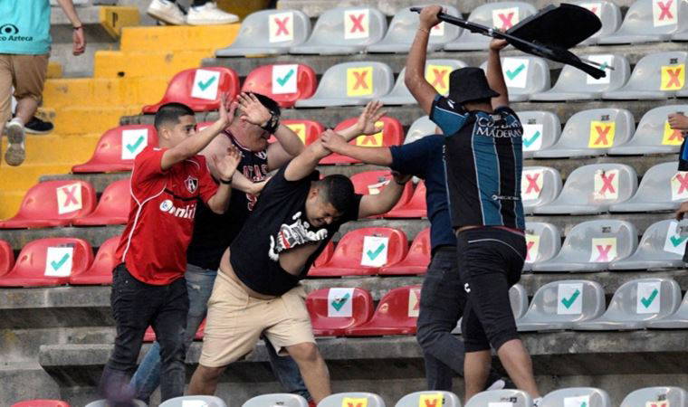Meksika Ligi'nin 9. haftasında, Queretaro kentindeki Corregidora Stadyumu'nda oynanan Queretaro-Atlas mücadelesinde, 63. dakikada rakip taraftarlar arasında kavga çıktı.