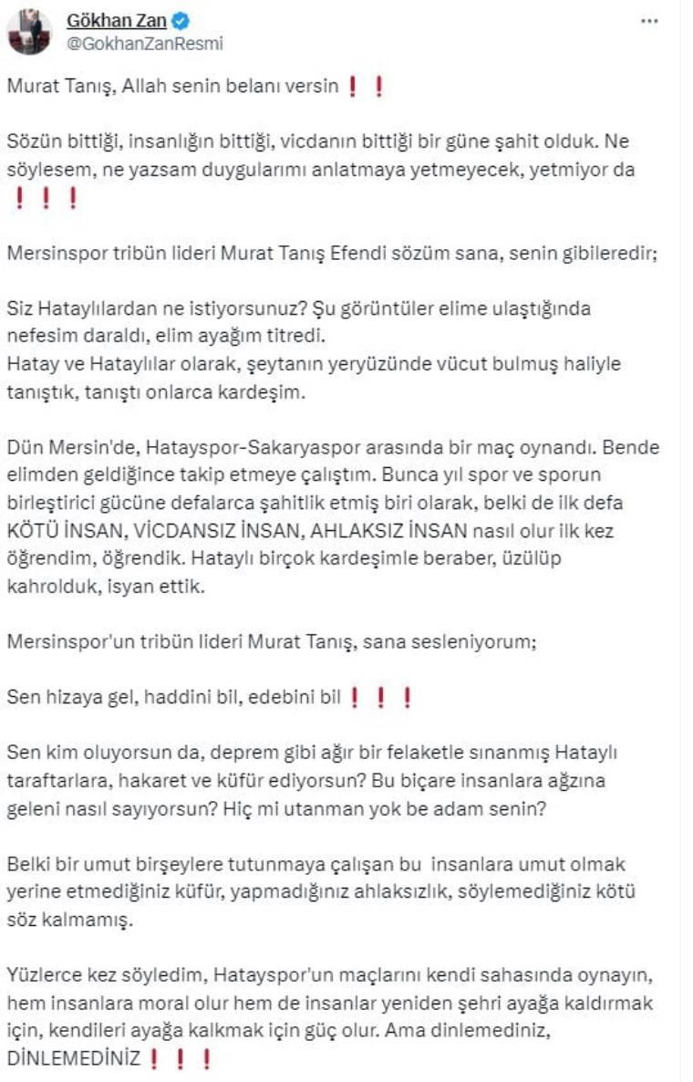 Gökhan Zan'ın sosyal medya hesabından yaptığı paylaşım: