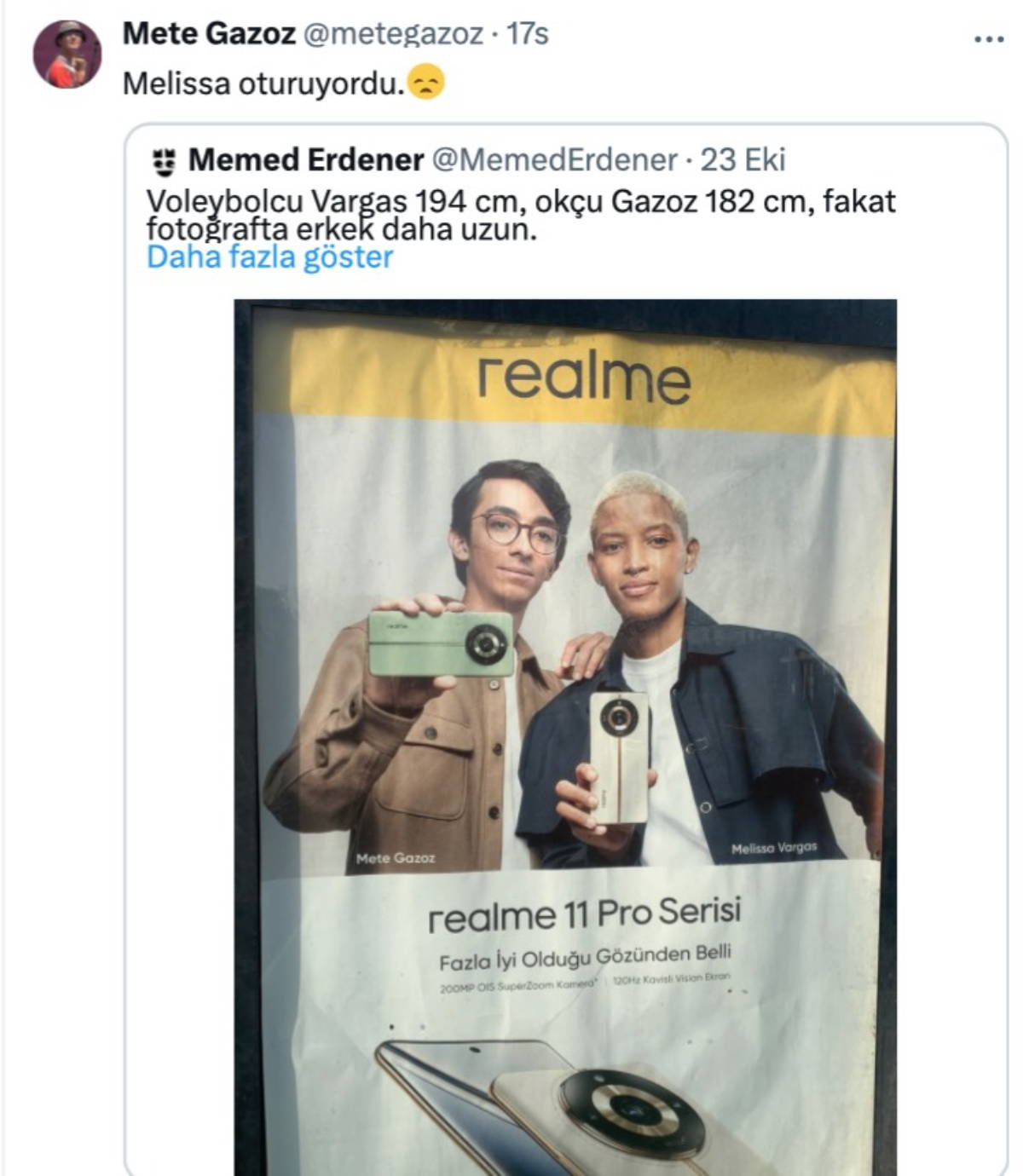 195 cm boya sahip Vargas’ın fotoğrafta boyu 182 cm olan Gazoz’dan kısa görünmesi sosyal medyada tepkilere neden oldu.