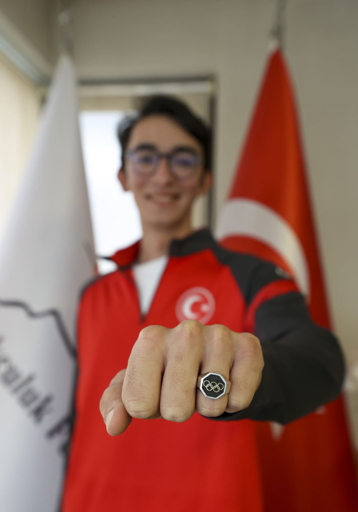 Üzerinde olimpiyat halkaları bulunan yüzüğüyle ilgili soruyu Mete Gazoz, "Bu sembolü sevdiğim için kendim yaptırdım. Başka hiçbir anlamı yok. Yüzük gümüş, halkalar da altın" diye yanıtladı.