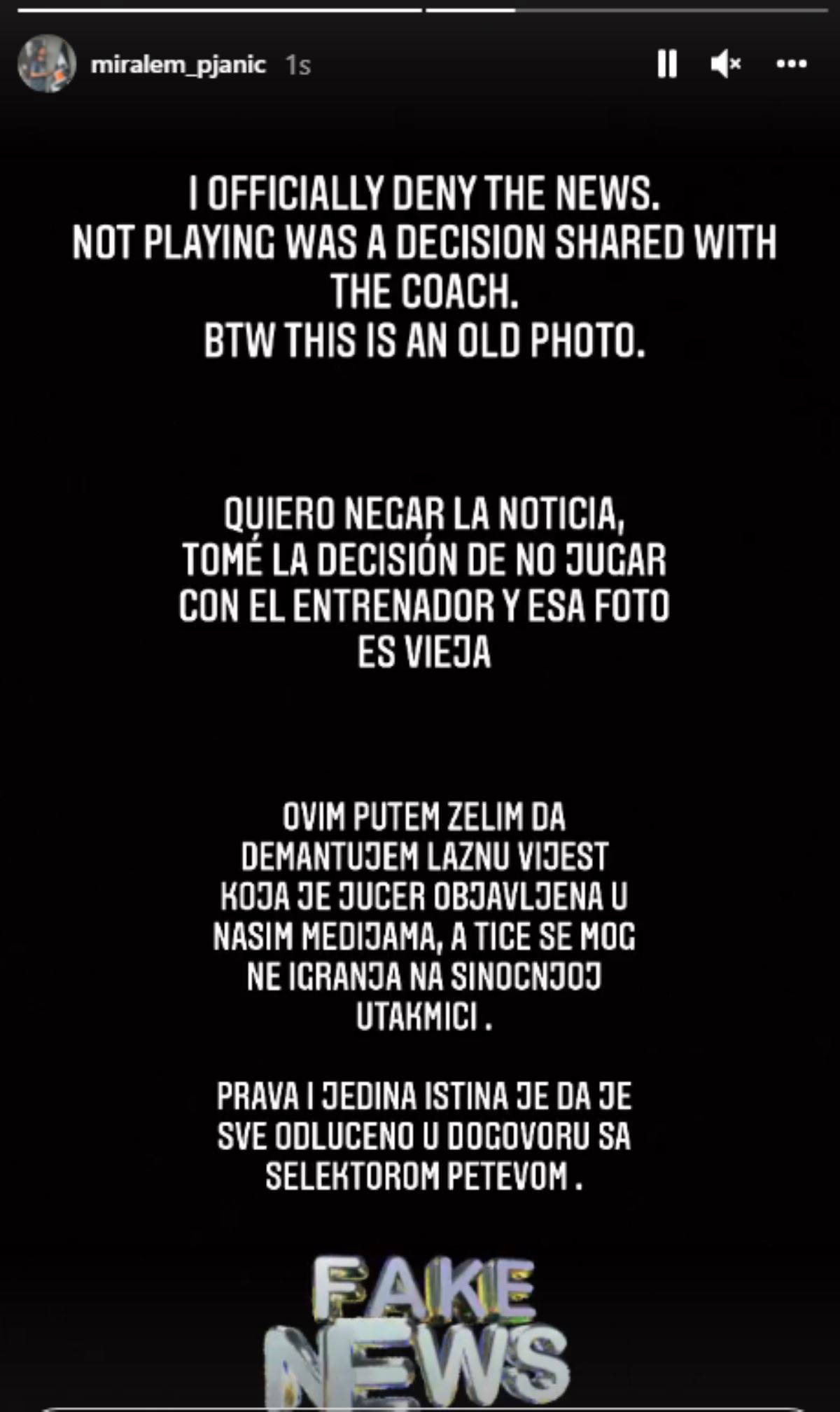 Pjanic, paylaşımında "Resmi olarak haberleri reddediyorum. Oynamama kararı teknik direktör ile beraber alındı. Ayrıca fotoğraf da eski." dedi.