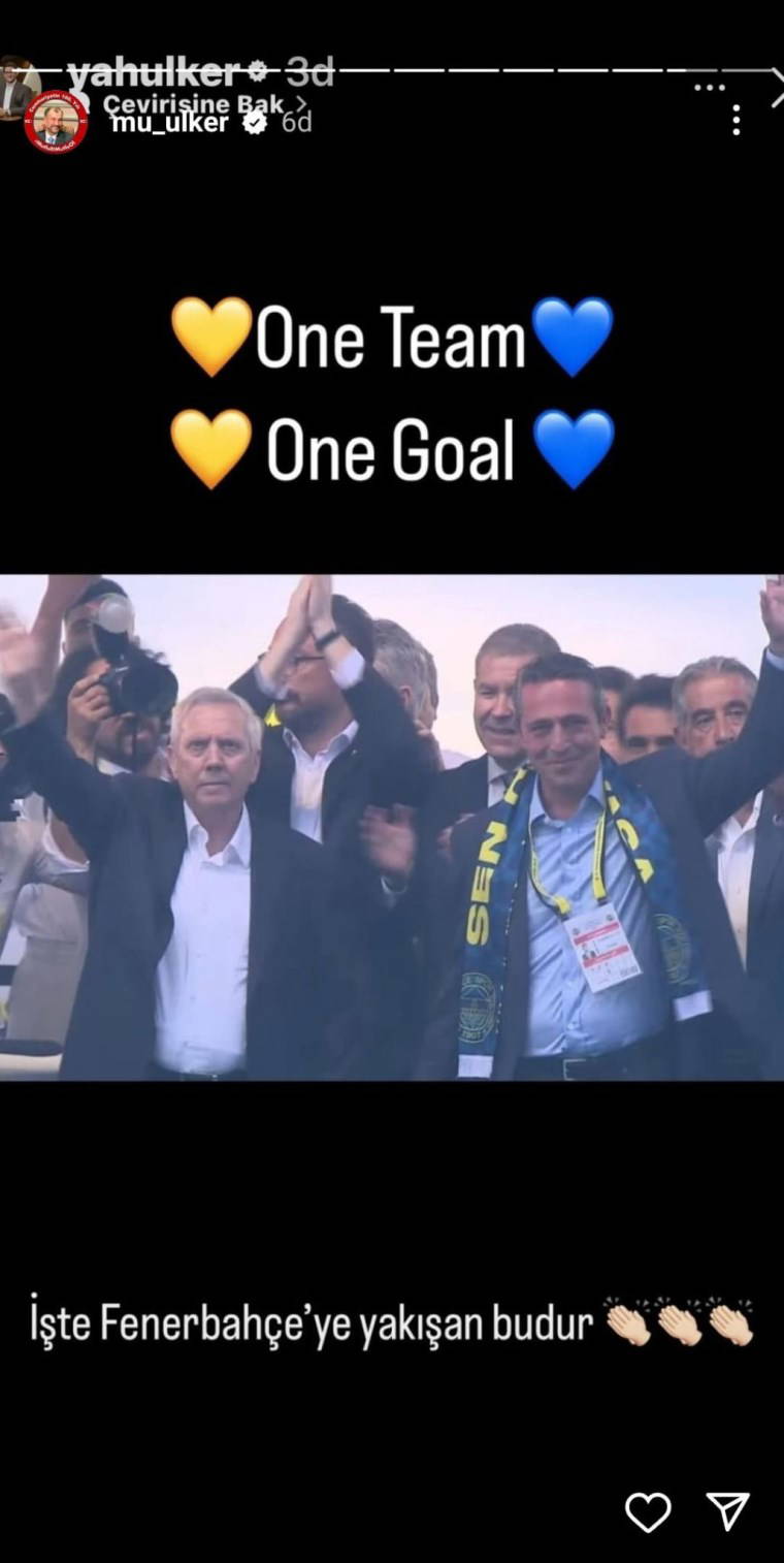 Ülker, yaptığı paylaşımda "Tek takım, tek hedef" ve "İşte Fenerbahçe'ye yakışan budur" ifadelerini kullandı.