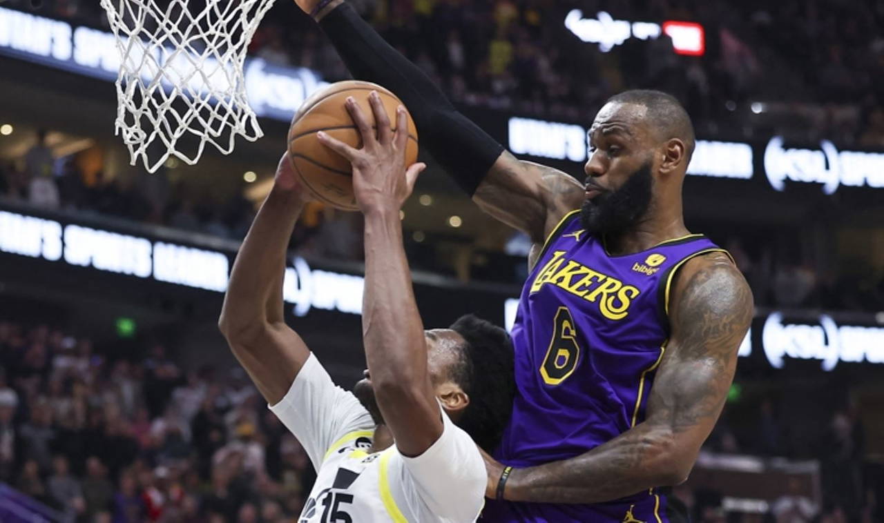 Play-off'a kalma mücadelesi veren Lakers, uzatmanın bitimine 27 saniye kala all-star yıldızı LeBron James'in basketiyle Utah Jazz'i yenerek bu sezon 41. galibiyetini elde etti.