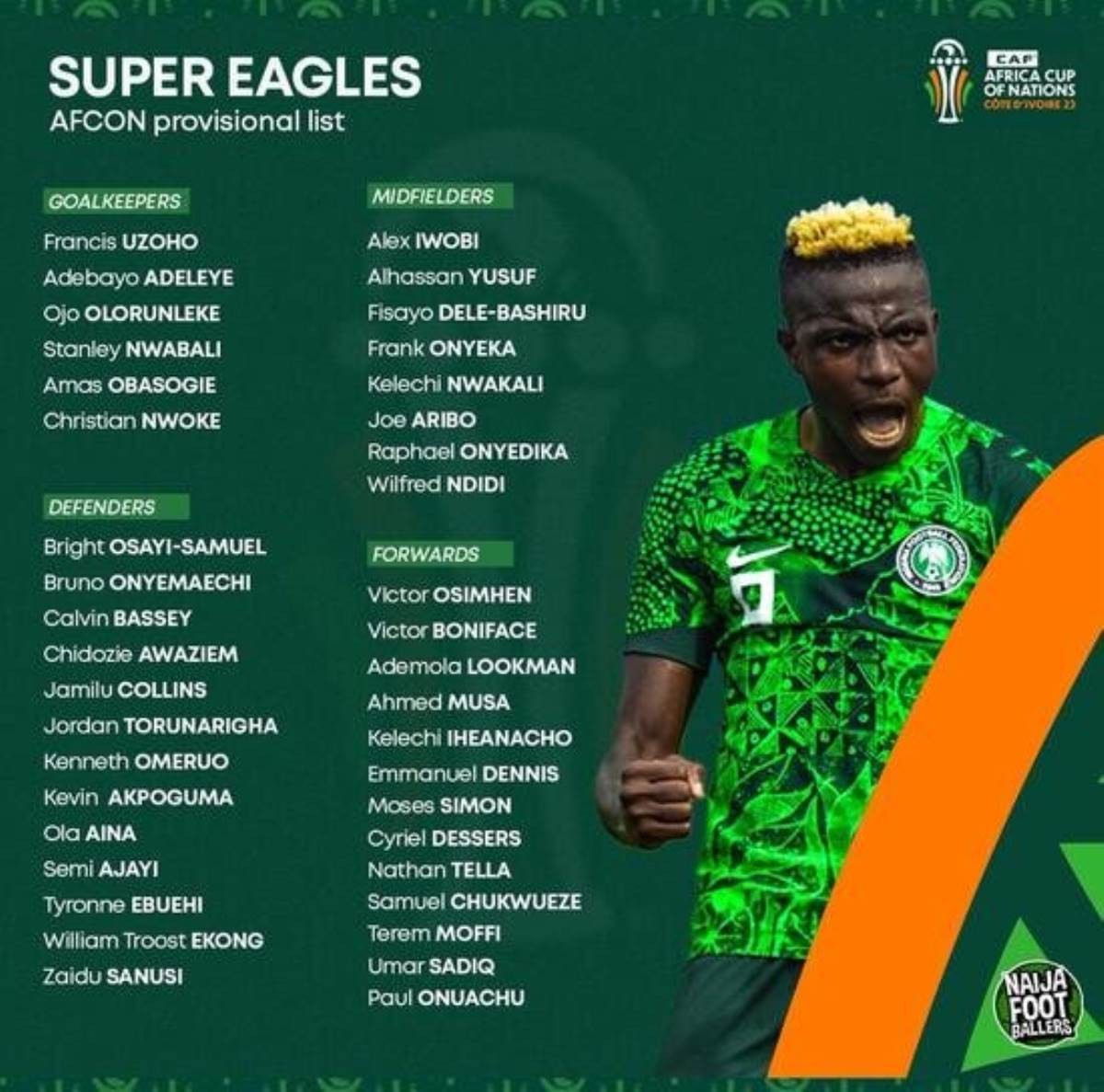Nijerya Milli Takımı'nın Afrika Uluslar Kupası geniş kadrosu açıklandı.