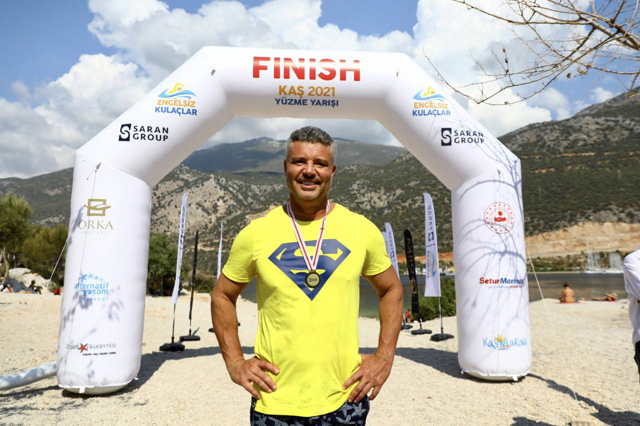 Antalya'nın Kaş ilçesinde düzenlenen 'Engelsiz Kulaçlar' yüzme yarışı renkli anlara sahne olurken özel gereksinimli gençler, Sadettin Saran ile birlikte kulaç attı.