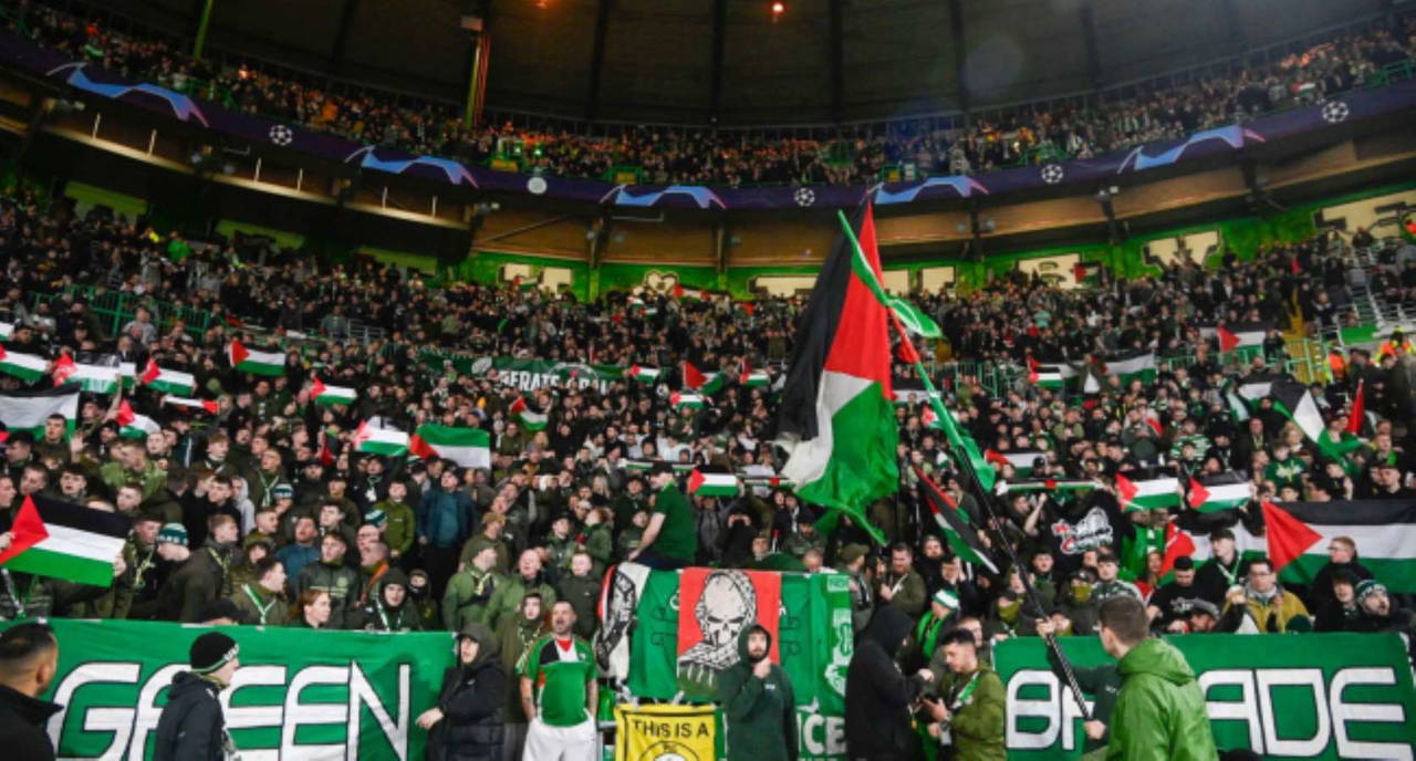 Madrid takımını konuk ettiği maçta Celtic taraftarı, bayrak açarak Filistin'e