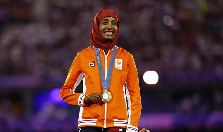 SİFAN HASSAN MADALYA TÖRENİNE BAŞÖRTÜSÜYLE ÇIKTI
