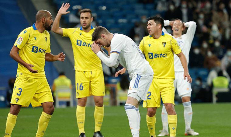 Ligde kalma mücadelesi veren Cadiz'e karşı etkili bir futbol ortaya koyamayan Real Madrid, La Liga'da 7 maç sonra puan kaybı yaşadı.