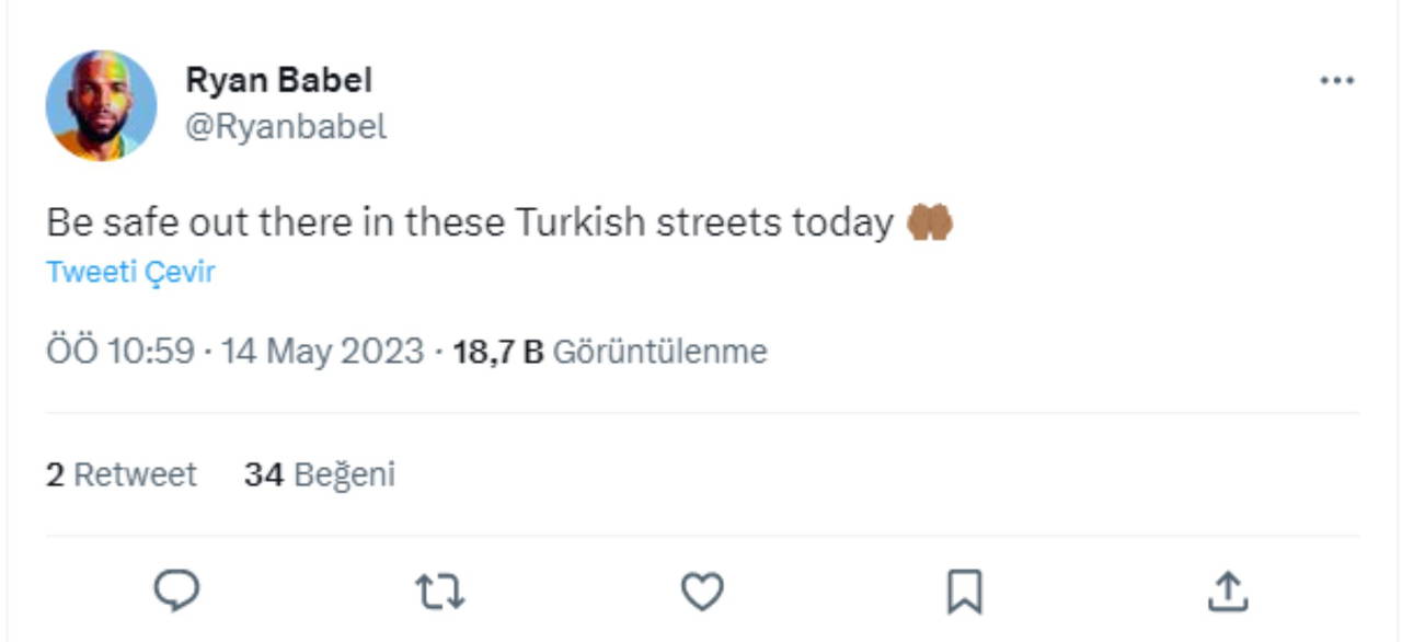 Babel, resmi Twitter hesabı üzerinden yaptığı paylaşımda, "Bugün Türkiye sokaklarında dikkatli olun" ifadelerini kullandı.