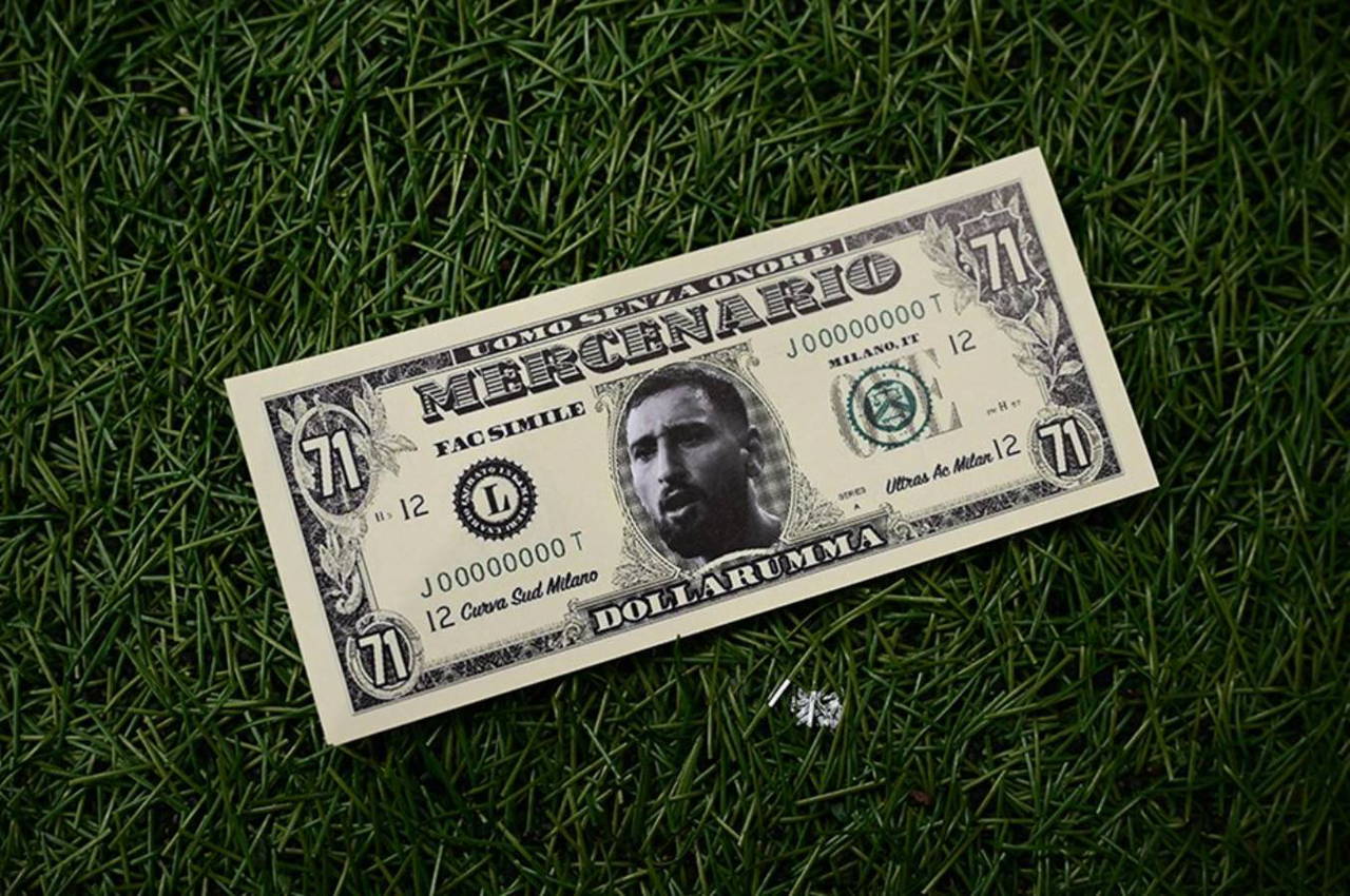 Taraftarlar İtalyan kalecinin PSG'ye transferi sırasında parayı tercih ettiği yönünde göndermede bulunarak sahte paraları sahaya attı.
