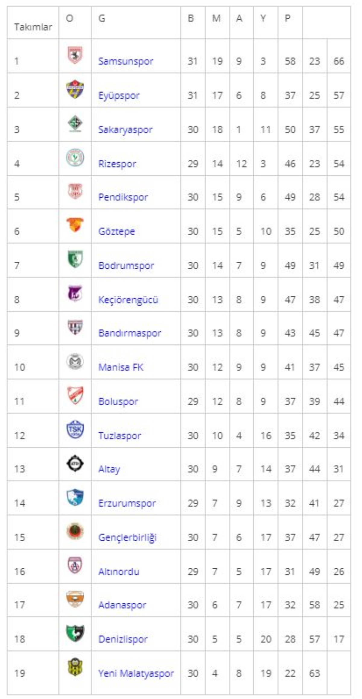 Spor Toto 1. Lig'de puan durumu: