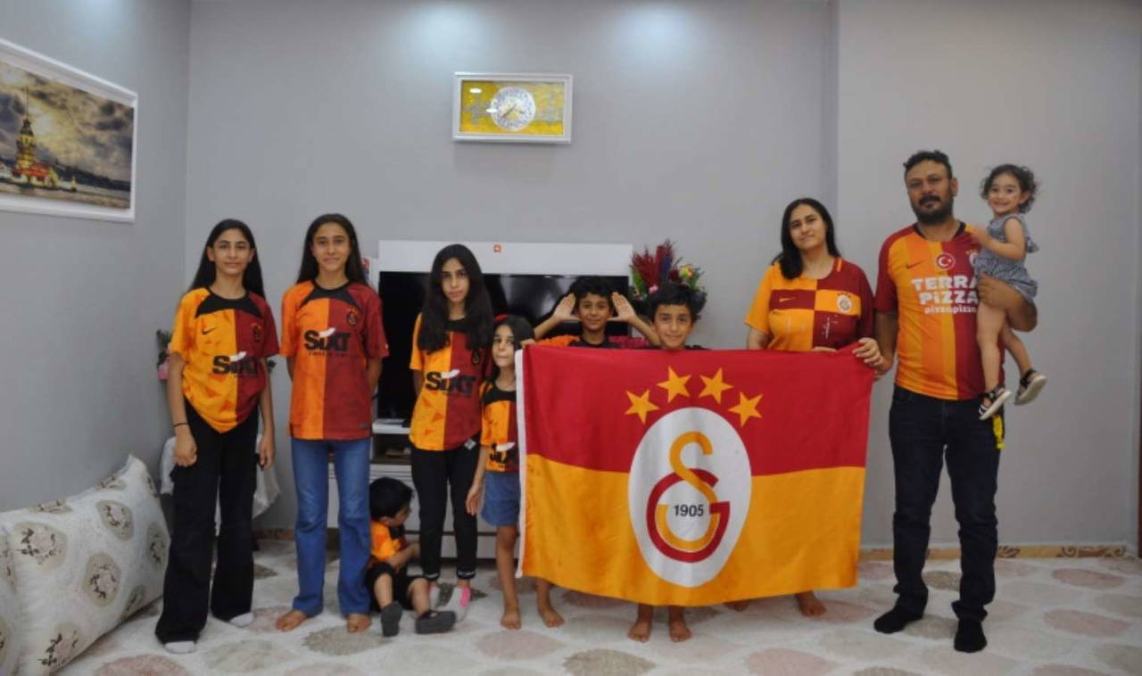 Mardin'in Kızıltepe ilçesindeki sarı kırmızı boyalı evde yaşayan fanatik Galatasaray taraftarı 42 yaşındaki Metin Kayan, 5 çocuğuna da aynı sevgiyi aşılıyor.