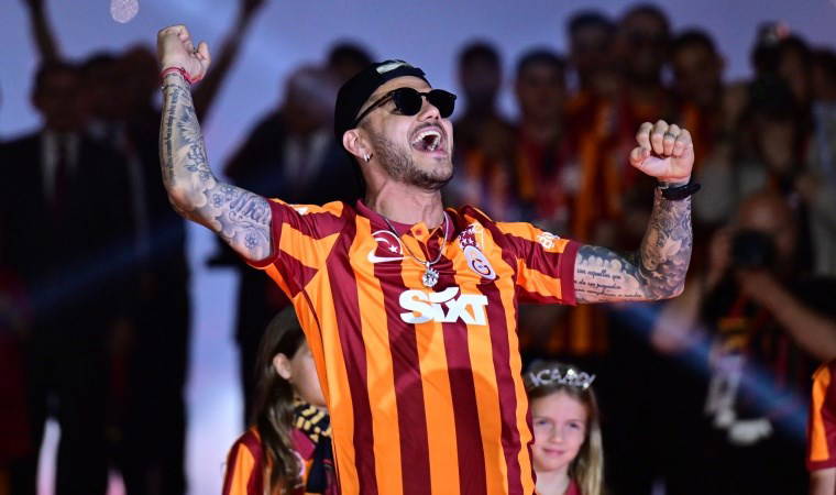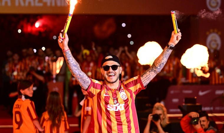 Siyah, Galatasaray logosu işlemeli pelerin giyen, ellerinde meşale olan Icardi, sonra kendisiyle özdeşleşen "Aşkın olayım" ile sevinmeye devam etti.