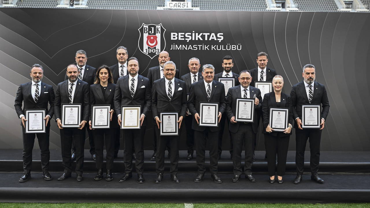 Beşiktaş Kulübü'nde yeniden başkanlığa seçilen Serdal Adalı ve yönetim kurulu, düzenlenen törenle mazbatalarını aldı.