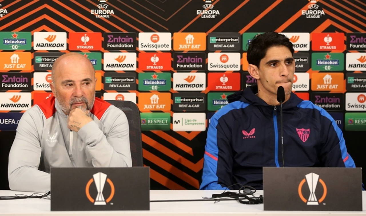 UEFA Avrupa Ligi son 16 turu ilk maçında Fenerbahçe'yi konuk edecek Sevilla'da teknik direktör Jorge Sampaoli ile futbolculardan Yassine Bounou, açıklamalarda bulundu.
