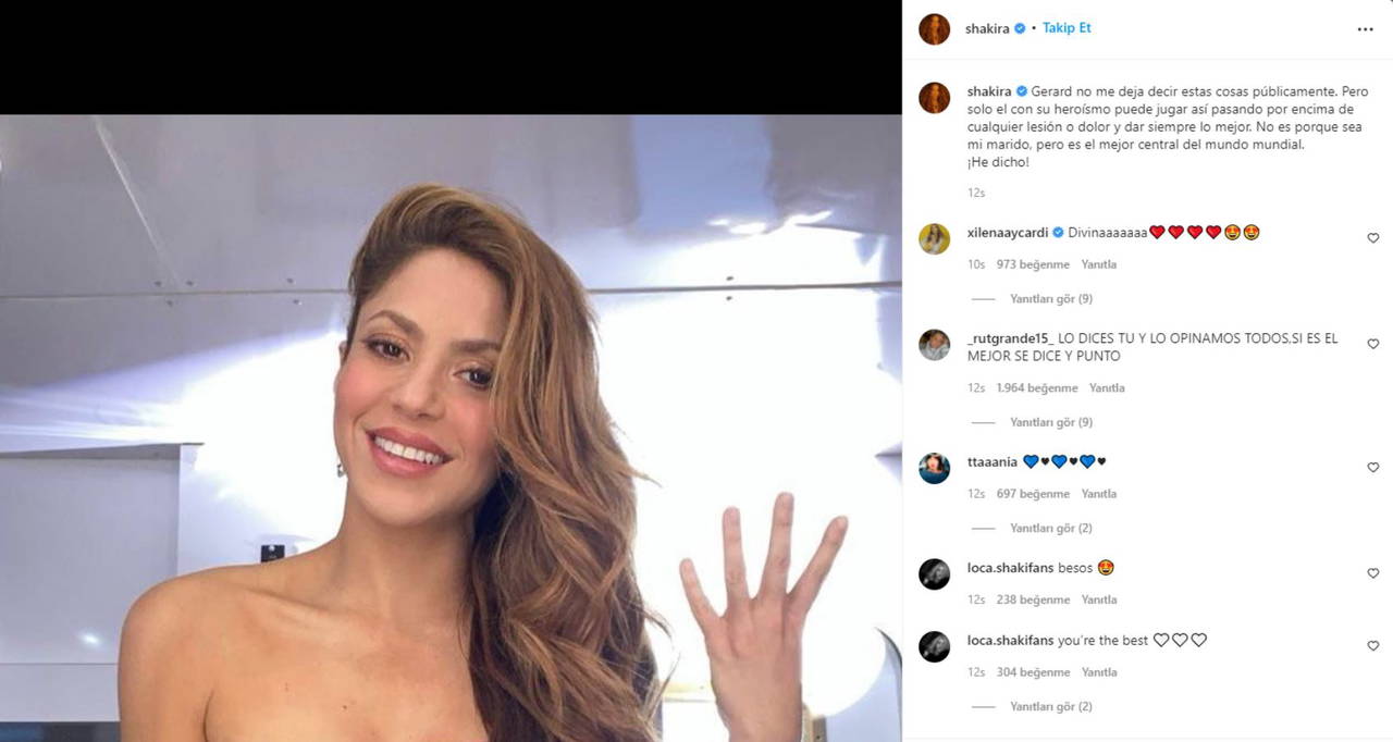 Barcelona kaptanlarından Gerard Pique, galibiyetin ardından eşi Shakira'dan övgü aldı. Shakira, 71.7 milyon takipçiye sahip Instagram hesabından kendi fotoğrafını paylaştı. Eliyle '4' yapan Kolombiyalı şarkıcı Pique'yi dünyanın en iyi savunmacısı olarak nitelendirdi.