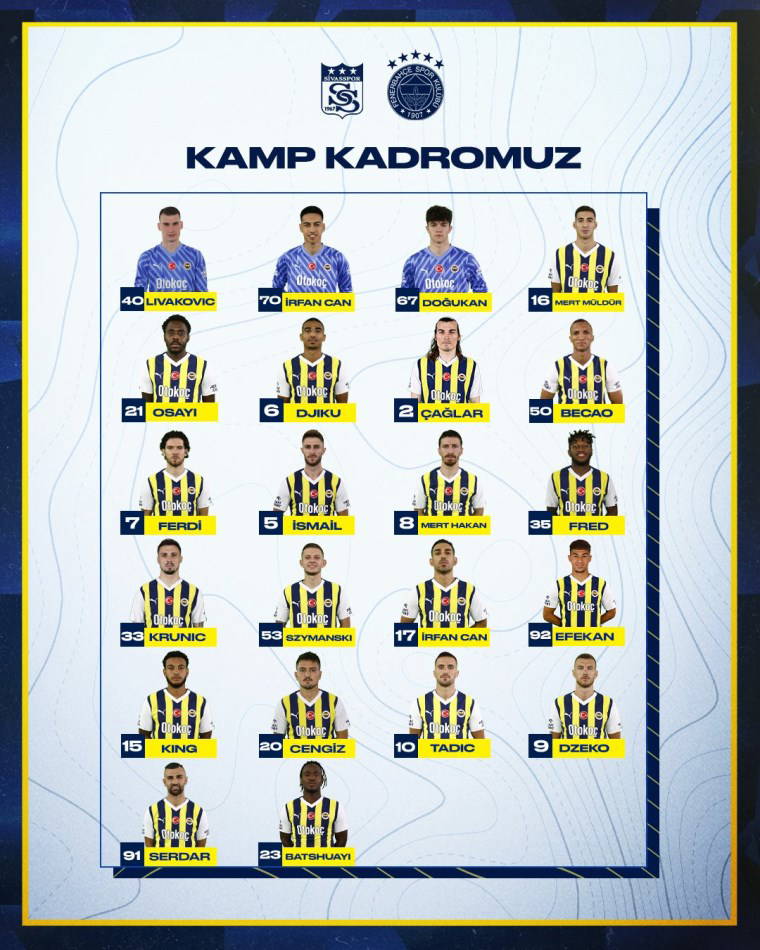 Süper Lig'de Sivasspor ile karşılaşacak Fenerbahçe, bu maçın kamp kadrosunu açıkladı.