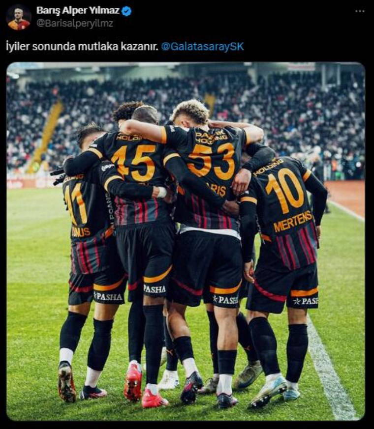 Barış Alper Yılmaz yaptığı paylaşımda, "İyiler sonunda mutlaka kazanır" ifadelerini kullandı.