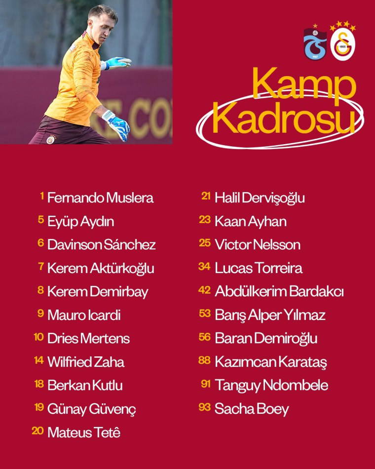 Galatasaray'ın kamp kadrosu şu şekilde:
